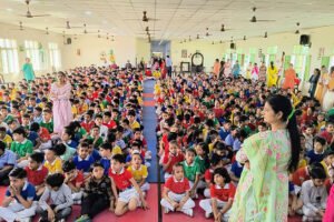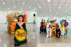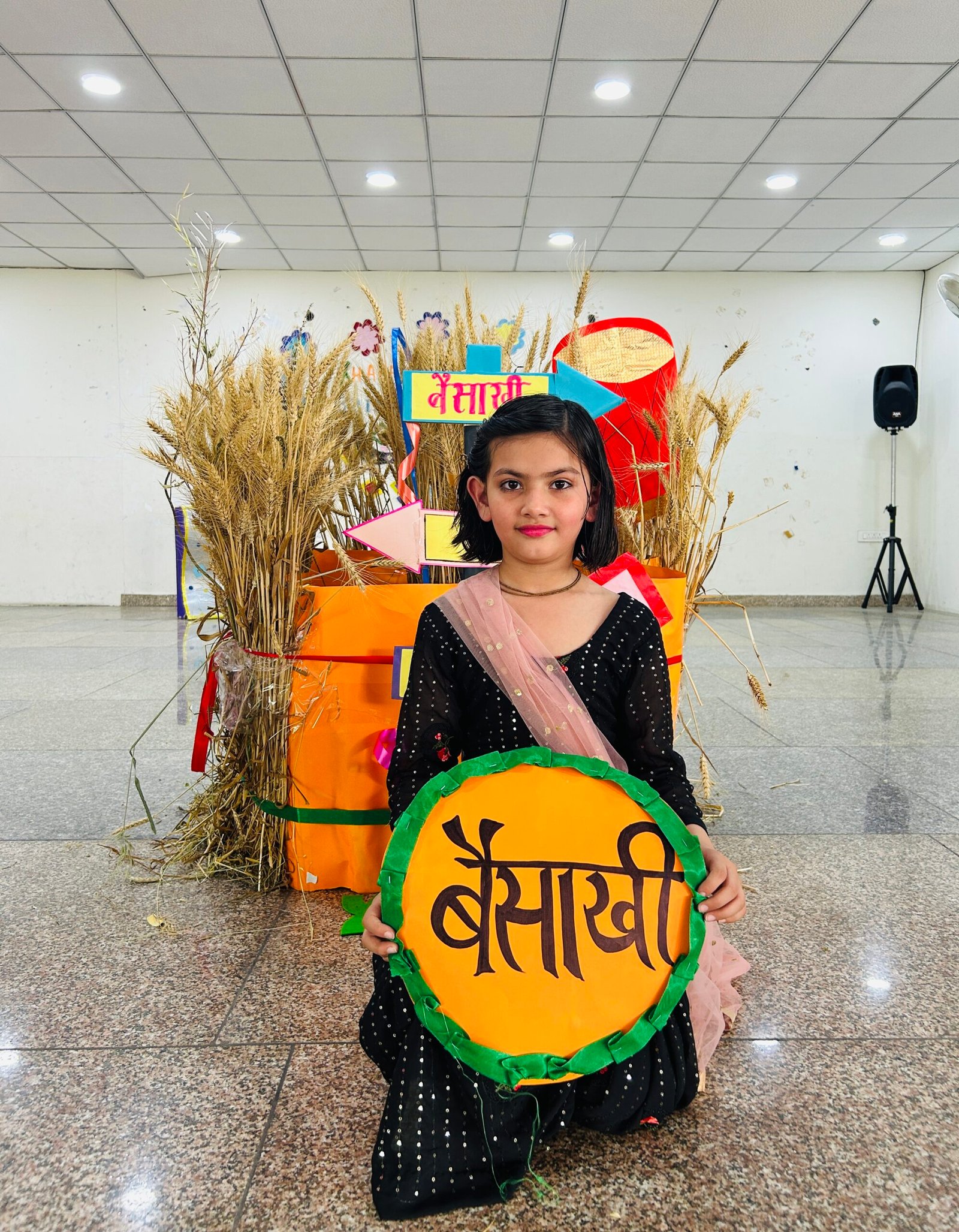The day began with a special prayer session, where students offered their gratitude for the bountiful harvest and prayed for prosperity and peace. Traditional Punjabi music, including dhol beats and folk songs, set the mood, with students dressed in vibrant attire, showcasing the cultural richness of Baisakhi.