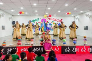 The cultural program featured a series of performances showcasing the rich heritage of India. Students performed traditional dances, narrating the story of Lord Krishna’s life—from his childhood in Gokul to his victories over demons and his teachings of the Bhagavad Gita. The dances, accompanied by melodious music and vibrant costumes, filled the air with an aura of joy and devotion.